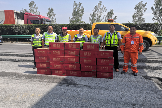 8月13日上午,合肥繞城高速北環(huán)管理處副總經(jīng)理李端良、養(yǎng)管中心合肥分中心主任張立之、副主任涂勇一行到我公司承建的2019-2021年度安徽省部分高速公路路面修復(fù)養(yǎng)護(hù)工程合肥北環(huán)高速施工現(xiàn)場進(jìn)行慰問,為奮戰(zhàn)在烈日一線的人員送來陣陣清涼。