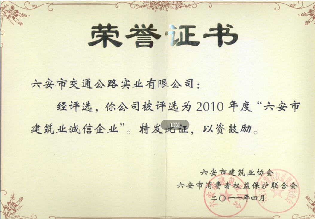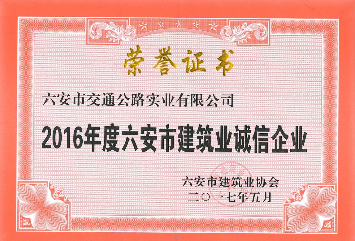 六安市建筑業(yè)誠(chéng)信企業(yè)