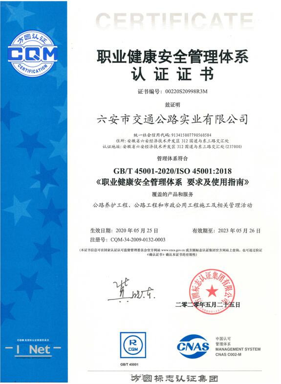 質(zhì)量、環(huán)境、職業(yè)健康安全管理體系認(rèn)證證書(shū)