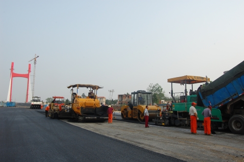 公司參加市政重點工程淠望路大橋橋面瀝青混凝土工程